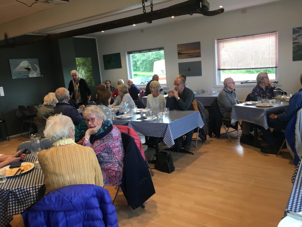 Vi avsluttet besøket på Bjarkøy Brygge, hvor det ble servert en buffee, bestående av vår-ruller og gryterett, og kaffe og vafler til dessert.